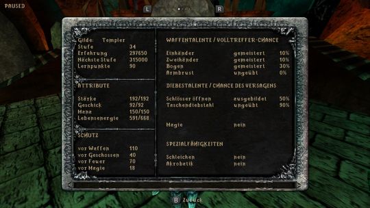 PPS: Die Fertigkeiten können bei den Trainern auf 100/100 erhöht werden (vorher Amulette und Ringe ablegen). Tränke, die permanent Stärke oder Geschicklichkeit erhöhen, bis dahin aufheben und dann alle auf einmal trinken.