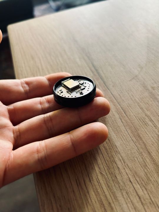 Das Ding kostet knapp 30 Euro (ja, für dieses Sonntagsprojekt und dessen Usecase komplett bescheuert). Wird als kleine runde Platine inkl. CR2032-Batterie, Gehäuse und Silikonhülle geliefert.